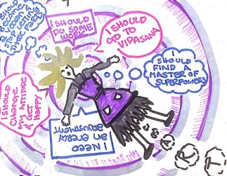 • The “pendulum” phenomenon (which I wrote about here, very early on in this grief and gratitude journey) and my fear of falling into a deep, dark hole is worthy of my attention. However, it seems likely that life is calling on me to learn how to inhabit the dirty, cracked floor of my heart… that there will always be a little bit of sadness and depression with me and that that’s okay. I need not be terrified of this. I can live alongside it. I feel inspired by my alter-ego and secret super heroine, La Princesa Fartinela, for helping me to realize this. If you want to view an animated reading of this DIY comic book, check out this sweet video.